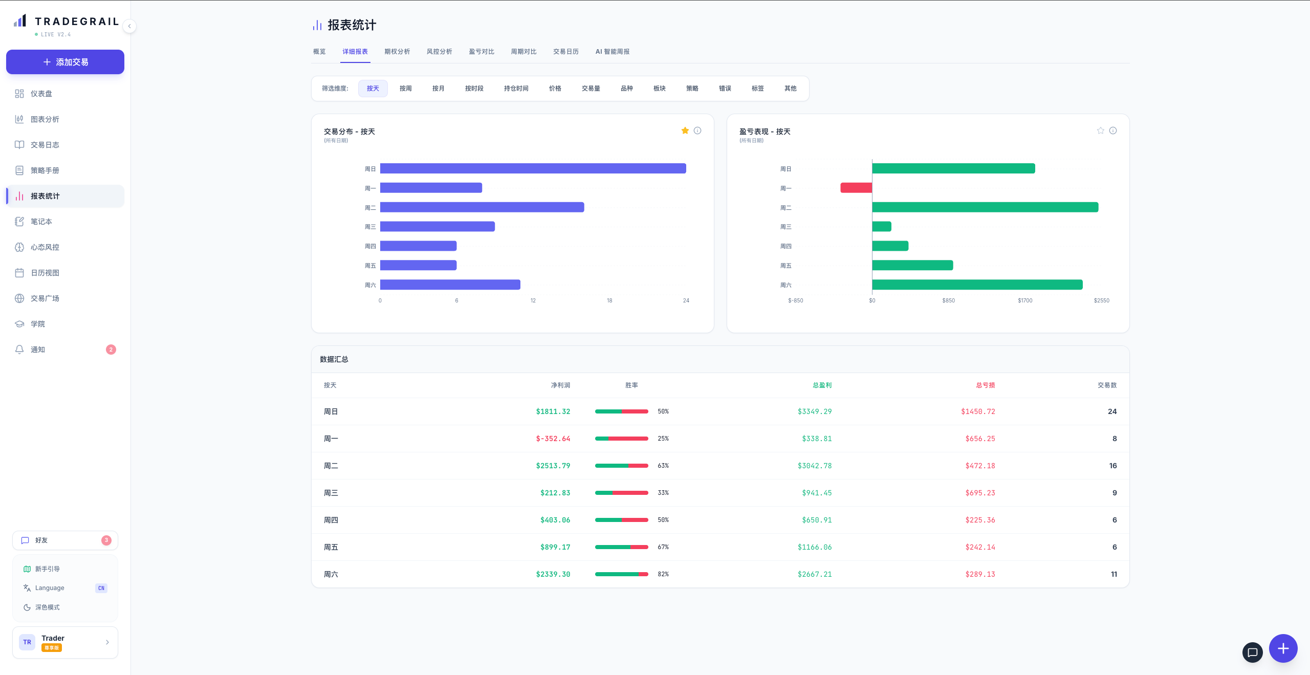 TradeGrail automates the entire review workflow. It ingests trade data from multiple brokers, uses AI to detect behavioral patterns and psychological triggers, and generates personalized improvement roadmaps. The system transforms subjective gut feelings into objective, data-backed trading intelligence.